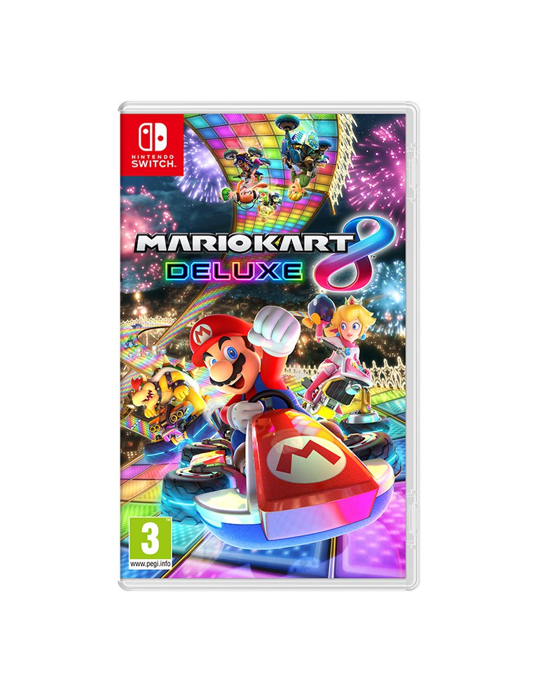 Con Nintendo Switch, i fan potranno godersi la versione definitiva di Mario Kart 8 dove e quando vogliono, persino giocando in 8 in multiplayer locale. Tutti i tuoi personaggi e circuiti preferiti della versione per Wii U fanno il loro ritorno, insieme a tutti i contenuti scaricabili. E arrivano anche nuovi personaggi: il ragazzo e la ragazza Inkling di Splatoon, Re Boo, Tartosso e Bowser Junior! Inoltre, la modalità battaglia è stata ampliata e include la battaglia palloncini e Bob-omba a tappeto, con circuiti tutti nuovi come la Periferia urbana e il Kartodromo, oltre ad alcuni ritorni come il Palazzo di Luigi di Mario Kart: Double Dash! per Nintendo GameCube e il Percorso di guerra 1 di Super Mario Kart per il Super Nintendo Entertainment System. Adesso i giocatori possono portare due oggetti alla volta, alcuni dei quali fanno il loro ritorno dai giochi precedenti, come Boo, il fantasma rubaoggetti, e la piuma, che ti permette di saltare molto in alto nella modalità battaglia. I giocatori possono anche scegliere di usare l’inedita guida assistita, che rende più facile rimanere in pista per i principianti e i bambini, anche per la classe 200cc. Gioca in locale oppure online nella modalità TV con una risoluzione massima di 1080p.